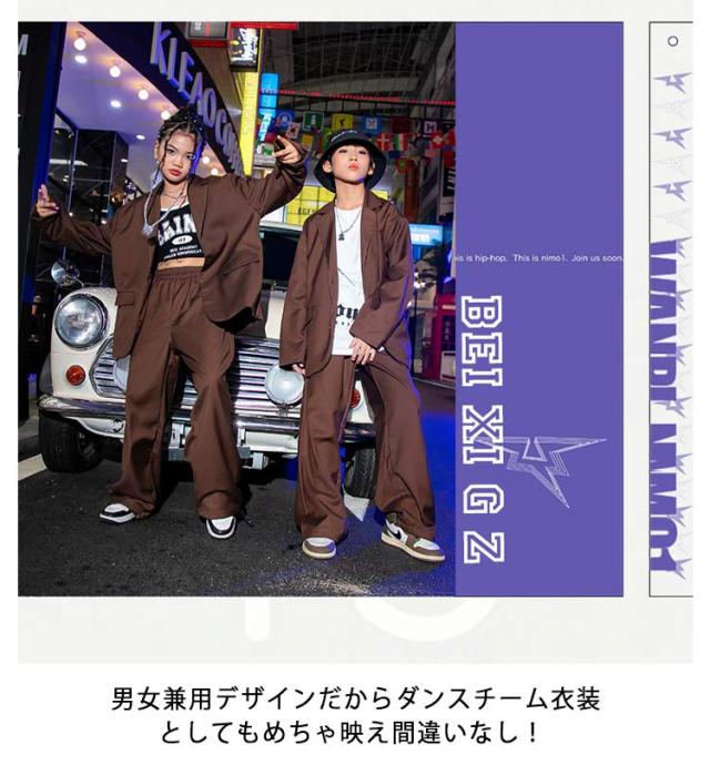 ダンス衣装 キッズ ロックダンス衣装 パンツスーツ 上下セット セットアップ ジャズ スーツ ジャケット 男の子 女の子 ボーイズ ガールズ ジャケット ロングパンツ イージーパンツ ウェストゴム 韓国 K-POP
