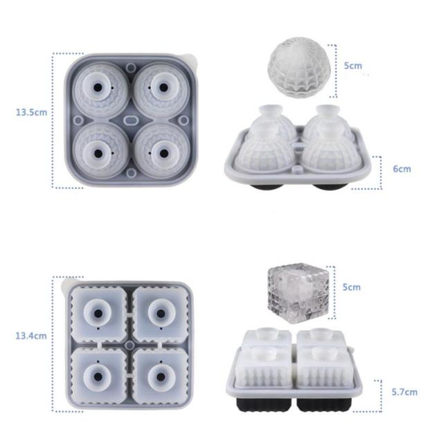 | サイズについての説明 | 【セット内容】丸氷×4個取り、四角型×4個取り 【サイズ】 【丸氷】幅13.5cm 高さ6cm 重さ約149g ボール直径約5cm 【四角型】幅13.4cm 高さ5.7cm 重さ約176g キューブ幅約5cm ※上記サイズは平置き実寸になります。 サイズ表の実寸法は商品によって1-3cm程度の誤差がある場合がございます。 |