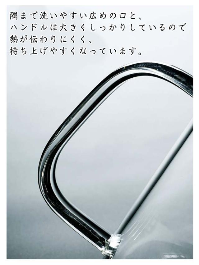 | ・茶漉し一体型のフタで手軽にお茶が淹れられるティーポット ・紅茶の色や美しく舞う茶葉など、見た目の美しさを楽しむことができるガラスのティーポット。 ・落ちにくい構造のフタなので、手を添えずに片手で注ぐことができます。 ・耐熱ガラス製なので食器洗浄機や食器洗い乾燥機にもお使いいただけます。 ・隅まで洗いやすい広めの口と、ハンドルは大きくしっかりしているので熱が伝わりにくく、持ち上げやすくなっています。 | |