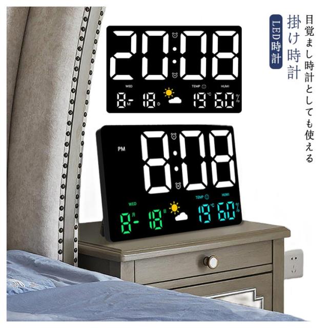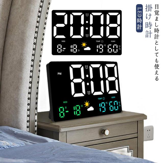 壁掛け時計 デジタル時計 LED 日付 温度表示 2way センサー 置き時計 目覚まし時計 リビング 寝室 アラーム LED時計 インテリアクロック 見やすい ウォールクロック 明るさ5段階調節 カレンダー 時刻 湿度