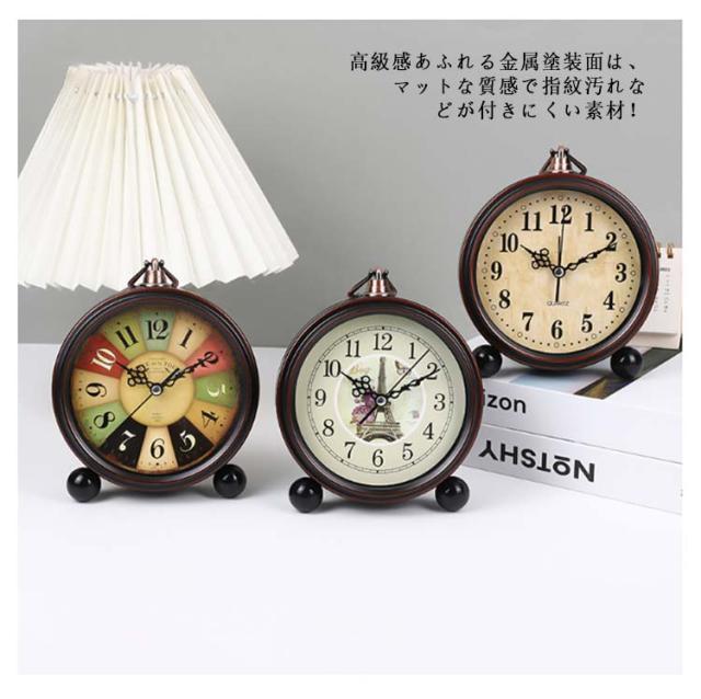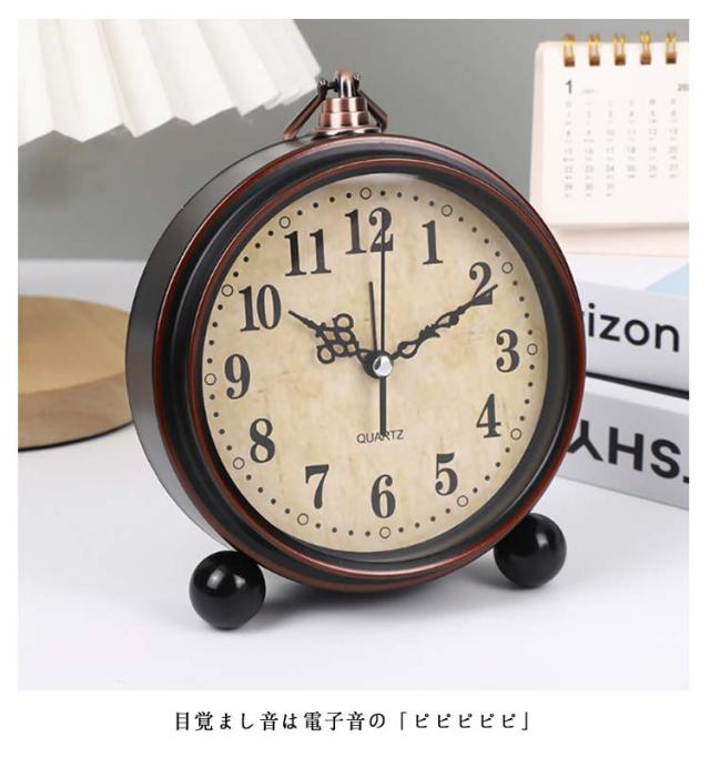 | アンティークモダンなおしゃれなインテリア&目覚まし置時計。 中世ヨーロッパの雰囲気が漂う、珍しい素材&絵柄の置時計。 高級感あふれる金属塗装面は、マットな質感で指紋汚れなどが付きにくい素材! 秒針のコチコチ音がない連続秒針、枕元に置いても静かな時計です。 目覚まし音は電子音の「ピピピピピ♪」 ちょこんと丸い脚と個性的な数字、空洞のある針で、インテリア性も抜群です。 | |