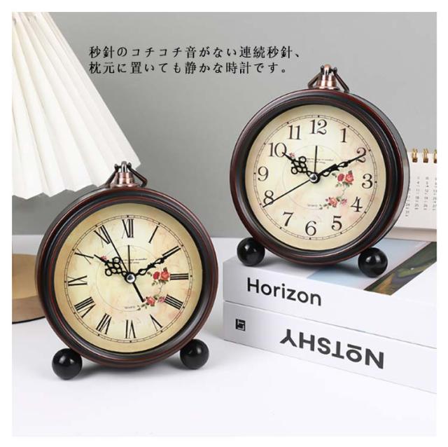 置き時計 置時計 花 フラワー ブラウン 小さい 目覚まし時計 玄関 おしゃれ かわいい 連続秒針 静か 静音 アンティーク レトロ ベッド 寝室 リビング 子供部屋 北欧 目覚まし時計 アナログ シンプル 電池式 卓上 北欧