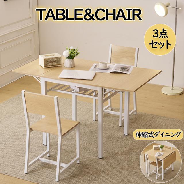 「クーポン配布中」ダイニングテーブル 3点セット 2人掛け ダイニングテーブル ダイニングデスク 無垢材 ダイニングテーブルセット ダイニングチェア 折りたたみテーブル 伸縮ウッドダイニング 食卓テーブル 2人用 おしゃれ