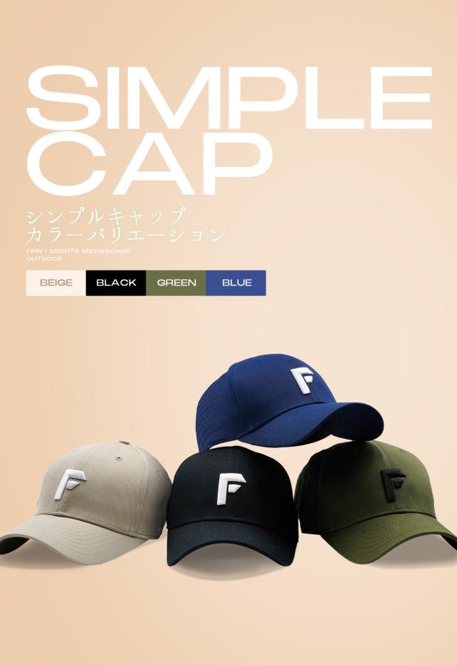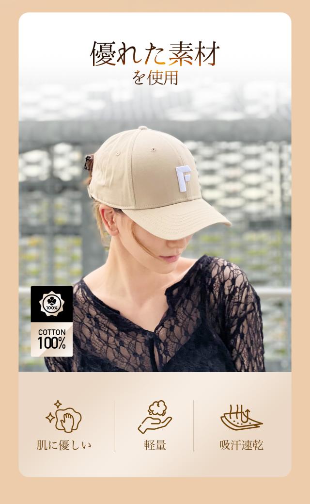フロントには立体感のあるFロゴ刺しゅうがあしらわれたキャップ。程よいつばの長さとベーシックなデザイン。