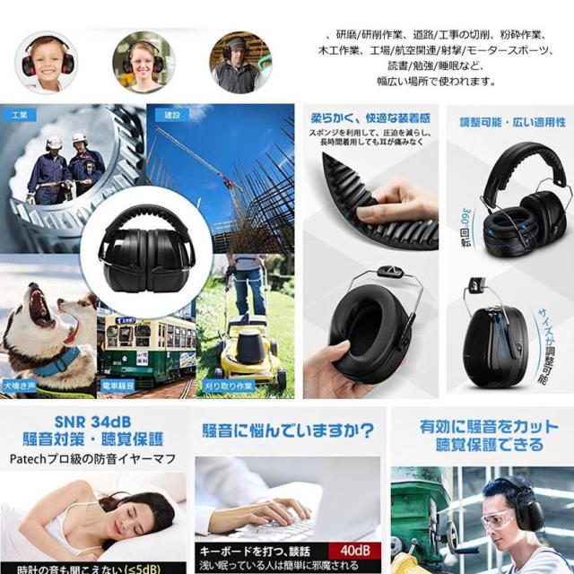 防音イヤーマフ 2カラー 騒音 防止 遮音 対策 ヘッドホン型 遮音値34dB 快適 低減 調整 耳あて 勉強 読書 睡眠 安眠 旅行 テレワーク/勉強/工場/作業場 集中 安眠 騒音対策 騒音軽減 装着感よい