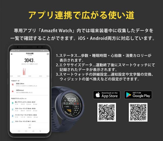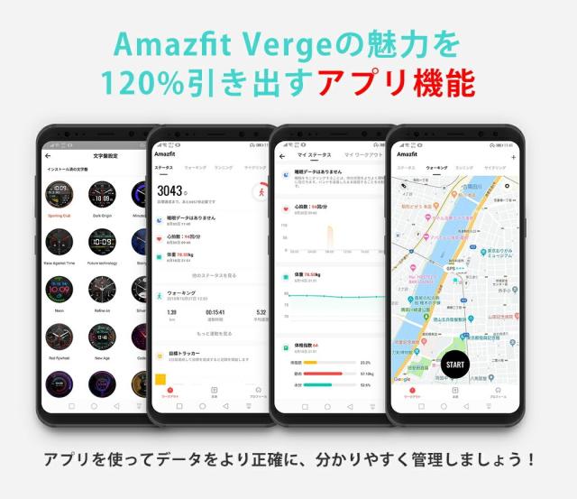 デザイン性と機能性を両立したAmazfit Vergeは、日常生活をより便利で快適にするスマートウォッチです。ビジネスからプライベートまで幅広いシーンで活躍し、スマートな毎日をサポートします。