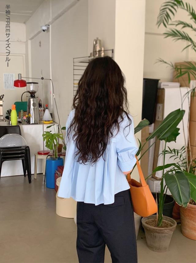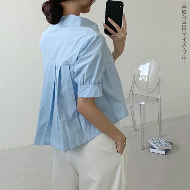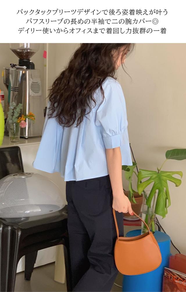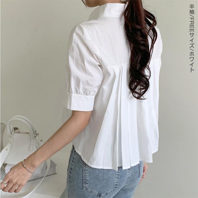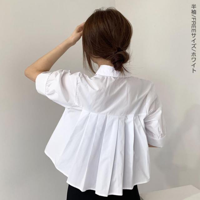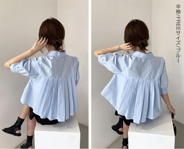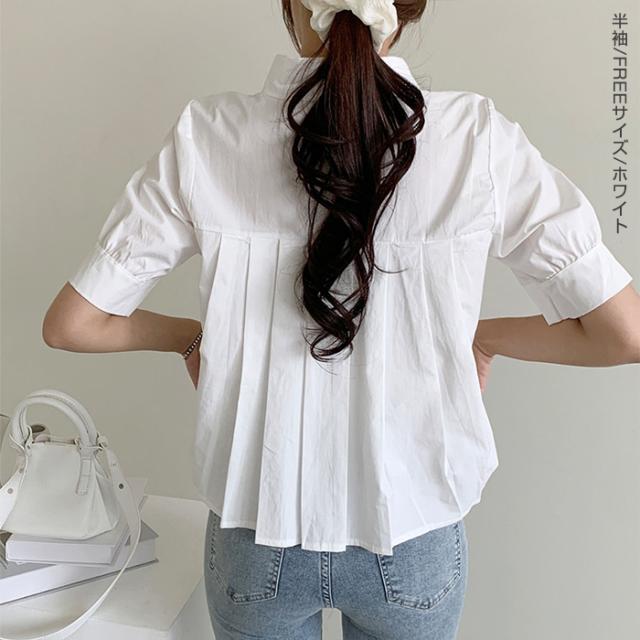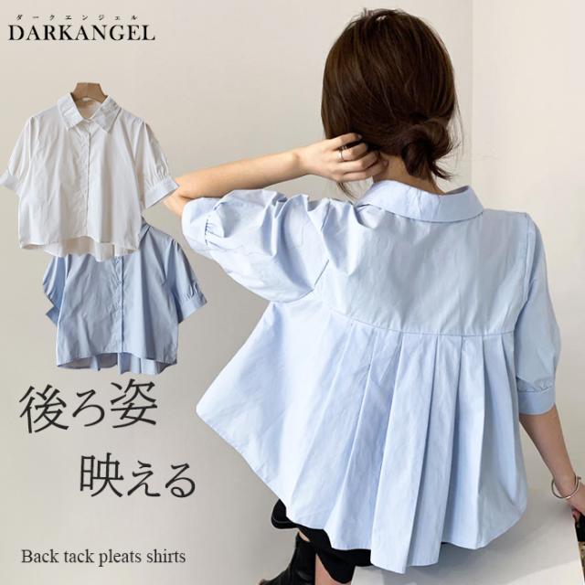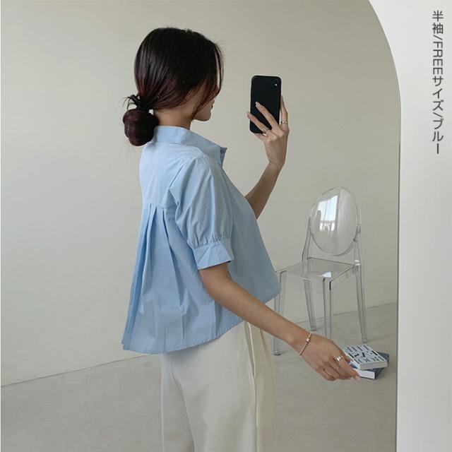 33%OFFクーポン!新作 バックプリーツ タック バックタック プリーツ バックシャン ブラウス レディース シャツ トップス 春 トレンド クロップド丈 ショート丈 短め トレンド カジュアル【 バックタックプリーツシャツブラウス 】春新作 ●即納●