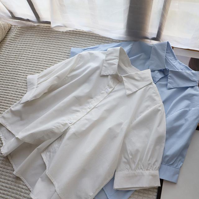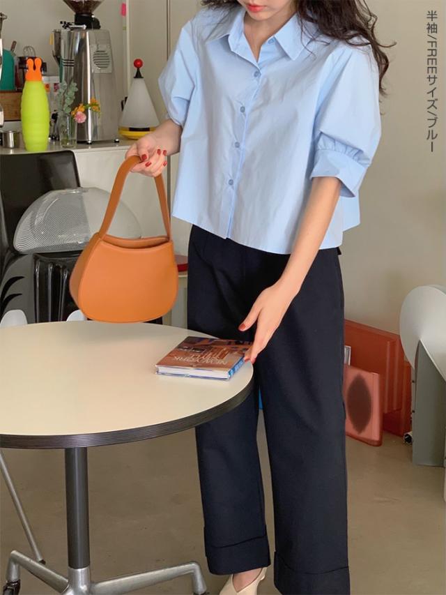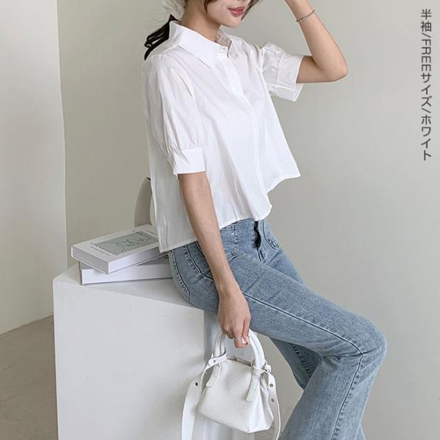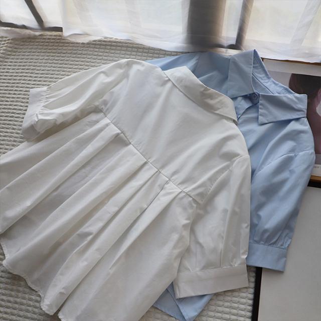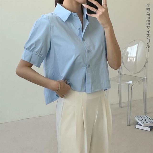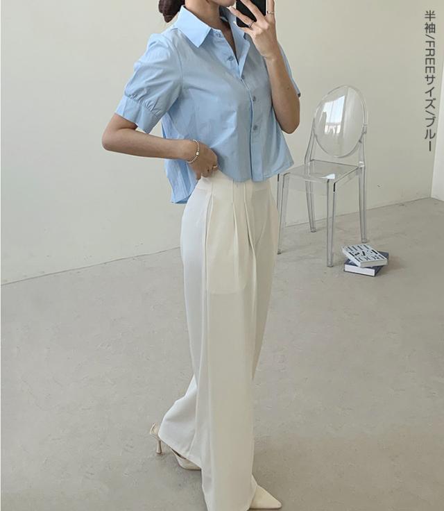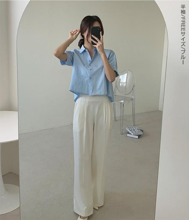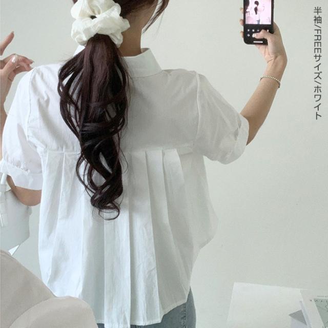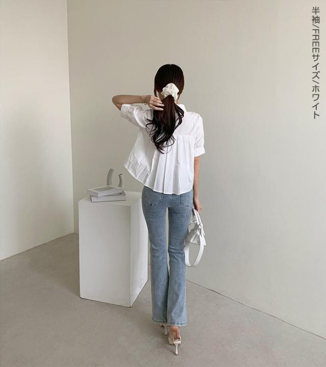 33%OFFクーポン!新作 バックプリーツ タック バックタック プリーツ バックシャン ブラウス レディース シャツ トップス 春 トレンド クロップド丈 ショート丈 短め トレンド カジュアル【 バックタックプリーツシャツブラウス 】春新作 ●即納●
