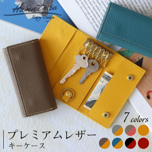 キーケース レディース メンズ 本革 革 ブランド プレミアムレザー バイカラー 高級 牛革 スリム シンプル スマート 収納 カラバリ シンプル シュリンク レザー ボタン キーホルダー キーリング リング HANATORA jpqlk