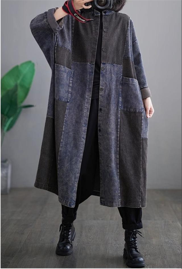 アウター レディース ロング丈 デニムジャケット 切り替え ゆるっとしたシルエット 季節の変わり目に 今っぽいオシャレを楽しめる オールシーズンOK