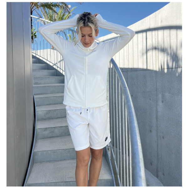 | | 手元まで覆うサムホール付きジップラッシュガード。UVカット機能を備えたスタンドカラー仕様なのでカバー力が高く、日やけ対策に優れた効果を発揮します。胸元のロゴがさりげないアクセント。速乾性のあるクイックドライ機能と接触冷感機能を搭載したことで、さらりとした着心地を実現します。一枚持っていると便利なアイテムです。無地とさりげない柄感の5色展開。 |