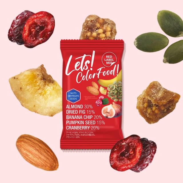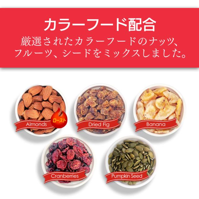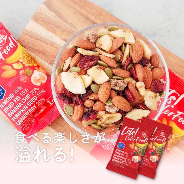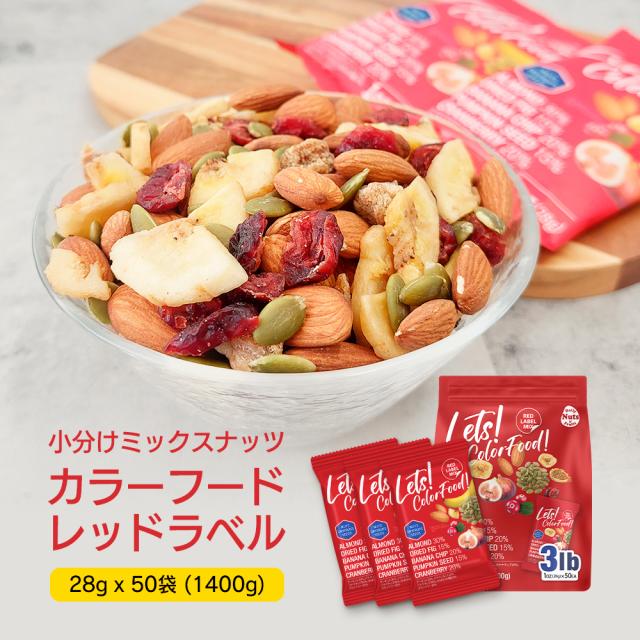 カラーフードレッド5種ミックスナッツ 1.4kg(28g x 50袋) 小分けミックスナッツ 素焼き (アーモンド・イチジク・バナナチップス・かぼちゃの種・クランベリー)便利な小分けタイプ
