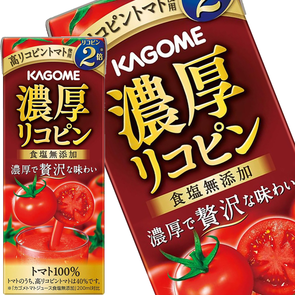 完熟トマトをぎゅっと濃縮したトマト100%飲料です。1.6倍のトマトを使用し、更に高リコピントマトを加えることでリコピン量が2倍(※)です。トマトのしっかりとしたコクがあり、料理用途にも適した味わいです。トマトのうち、高リコピントマトは40%使用しています。※「カゴメ トマトジュース食塩無添加」200ml対比