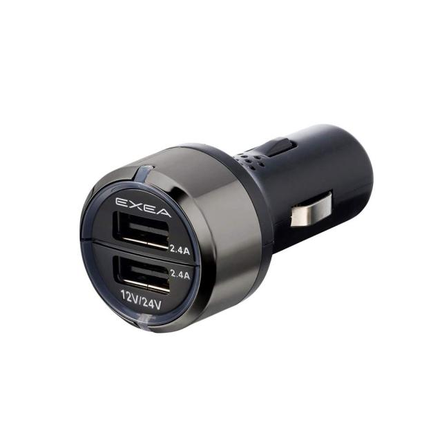 ●12V/24V車対応のUSB充電プラグです。 ●USB機器の充電状態の目安を示す、インジケーターを採用しています。 ※充電中は赤色、充電完了時は青色にインジケーターが変化します。 ●USBポートは接続した機種を自動で判別し、機種に合った電流で最適充電を行う自動判別機能を採用しています。 ※各ポート毎に独立制御しますので、異なる機種を同時に接続してもそれぞれに最適な充電ができます。 ●USBの表裏を気にせず挿せるリバーシブルUSBポートを採用しています。 ●USB出力は5V/2.4A×2ポートで合計4.8Aです。 ●高級感のあるBLACKメッキを採用しています。