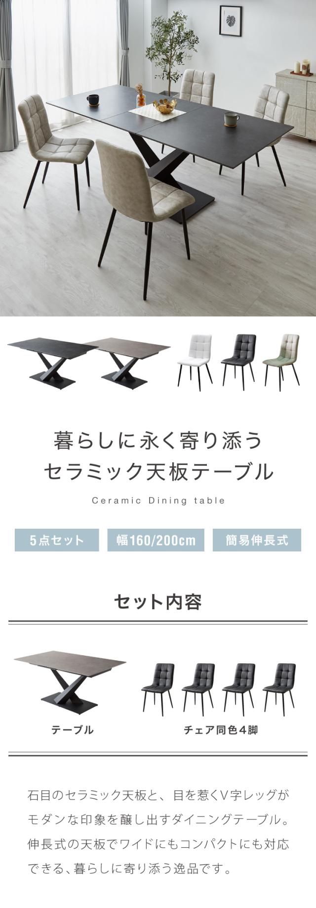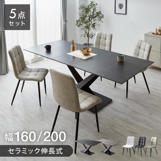 セラミック 伸長式ダイニングテーブルセット 幅160~200 伸縮 ダイニング5点セット 4人掛け 伸縮テーブル モダン 伸長式 ダイニング 耐水 耐熱 白 艶消し 傷がつきにくい おしゃれ(代引不可)【送料無料】