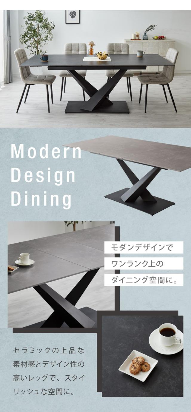 3サイズ伸長テーブル 幅140~200+カンティレバーチェア6脚