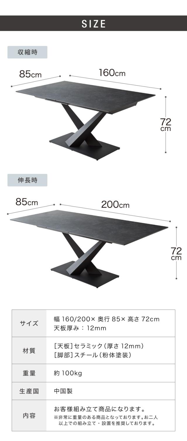 3サイズ伸長テーブル 幅140~200+カンティレバーチェア4脚