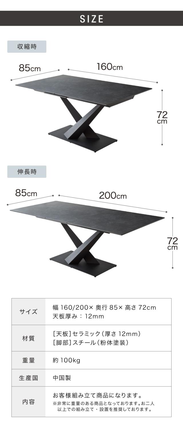 伸長テーブル 幅160~200+カンティレバーチェア6脚