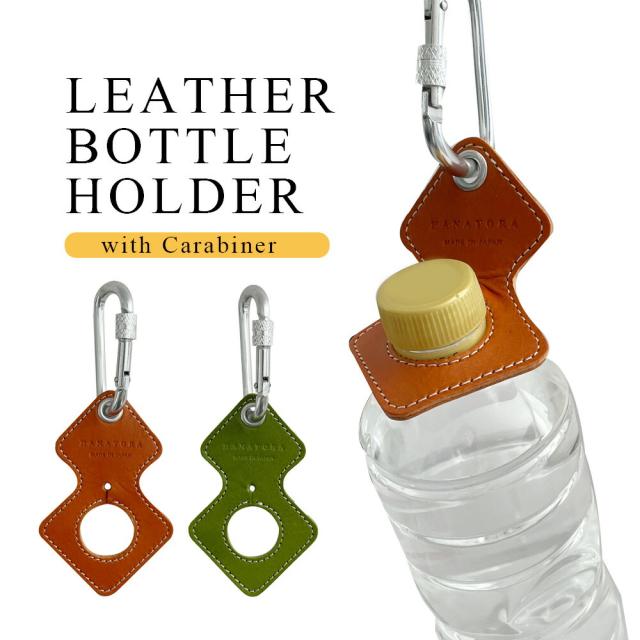 日本製 ペットボトル ホルダー 本革 カラビナ ボトル フック レザー キーホルダー リュック バッグ 鞄 ベルト 登山 ハイキング ウォーキング 散歩 レジャー アウトドア キャンプ 映える イベント 野外 屋外 おしゃれ かわいい 落ちない 切れない 外れない 丈夫 耐久 HANATORA