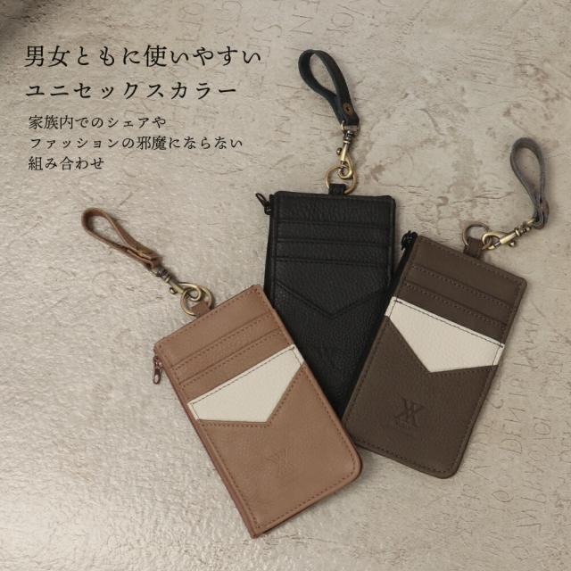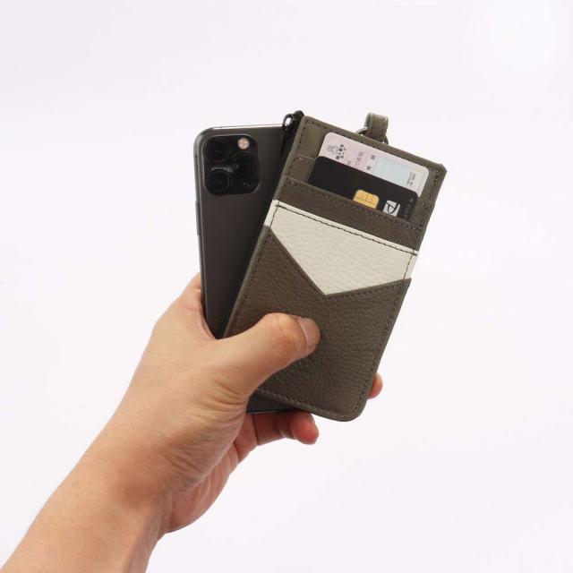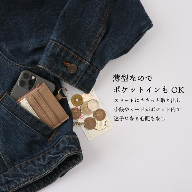 キャッシュレスな時代にマッチしたフラグメントケース、総本革仕立て。軽くてコンパクト、ファスナーポケットにはマチがあるので、お札も小銭も意外といっぱい入ります。カードポケットを一般的なサイズより「やや広め」に設計しているので、抜群の取り出しやすさに。本革の摩擦でカードが脱落しにくい仕様です。同色のレザーストラップを装備しております。バッグの持ち手等につけて、スムーズな取り出しをする事もできます。丸カンに鍵を装備する使い方も◎。スキミング防止機能をあえて付けないことで、タッチでそのままICカードをご利用いただけます。※ICカードが複数枚重なっているとリーダー側がエラーを起こす場合があります。ご利用の際はエラーの起こらないようにカードをセッティングしてください。