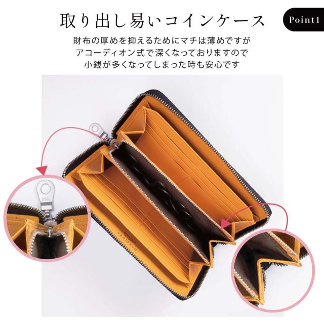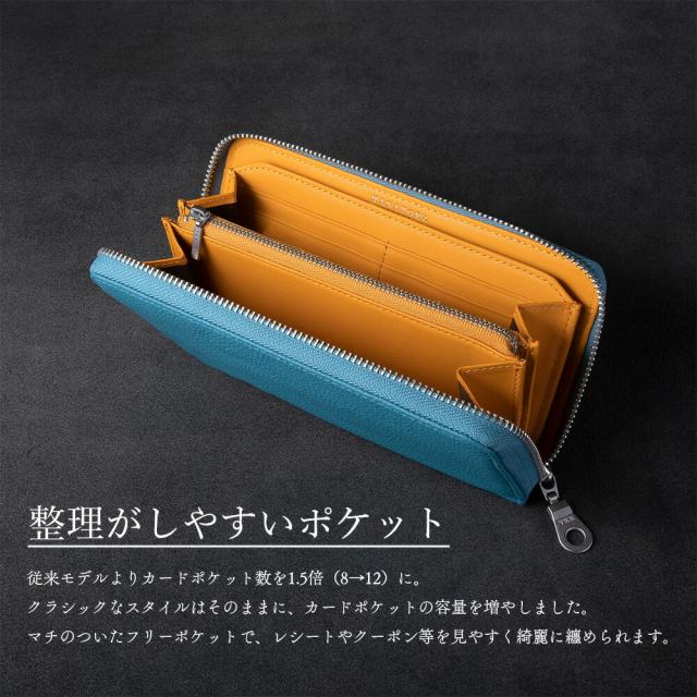 キャッシュレス化が進行していますが、それでも財布は大きい方がいい貴方にオススメのロングウォレット、総本革仕立て。美しいレザーが目を惹くオトナの財布です。大きく開くラウンドファスナースタイル。裏地にも本革を使用する事で、高い耐久性を誇ります。小銭入れのファスナーをL字型に設計することで、抜群の見やすさと取り出しやすさに。ファスナーには勿論日本製YKK製品を使用。4つのフリーポケットにはそれぞれマチをつけて高い拡張性に、さらに満足の12カードポケット。チープになりがちなジャバラスタイルとは異なり、シンプルながら重厚感のある、高見えするデザインに仕立てております。収納したアイテムの視認性が高く、レシートや領収証、クーポン等も綺麗に整理整頓できます。レジ前でもたつく事はもうありません。