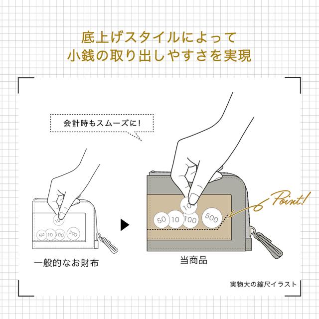 国産の姫路レザーを贅沢に使った、キャッシュレス時代にぴったりのお財布。時代はキャッシュレス!とはいえ、現金オンリーのお店や自販機などはまだまだ多いです。お札と、小銭と、カードがちょっとだけあればいい、そんな貴方にオススメのアイテムです。薄くて軽いので、メインのお財布は別に用意して、サっと取り出せるサブのお財布としても便利です。スーツの内ポケットに入れてもかさばらないちょうどいいサイズ感で、ビジネスシーンでも違和感なくご利用いただけます。