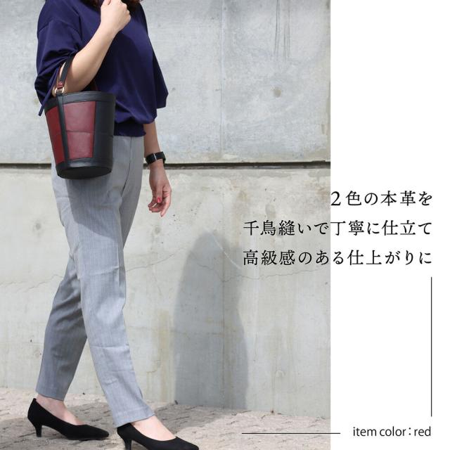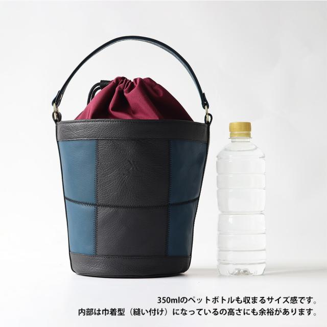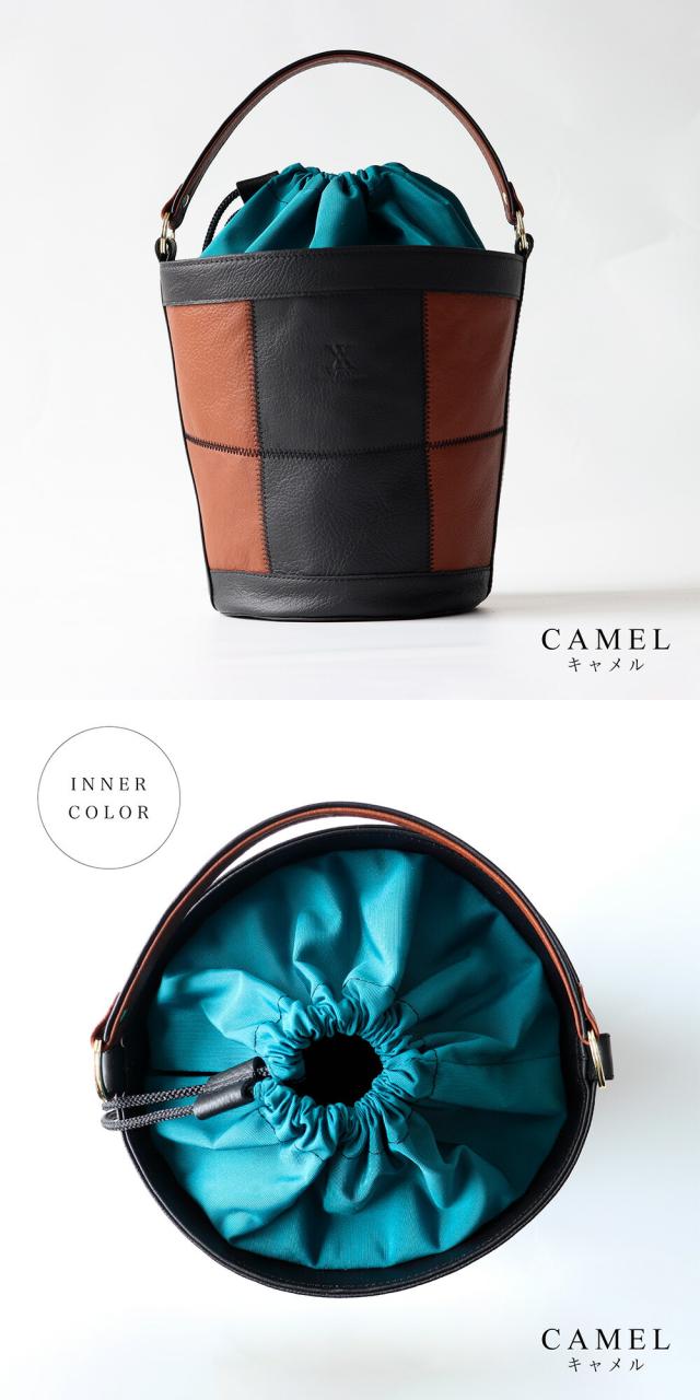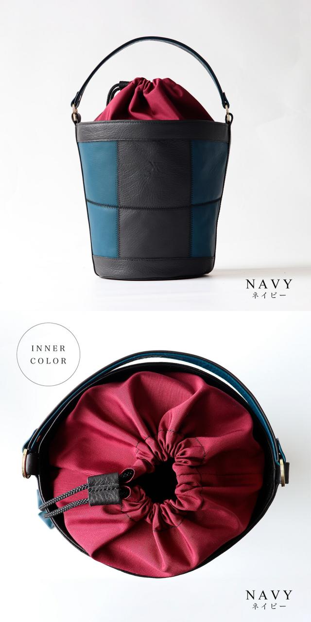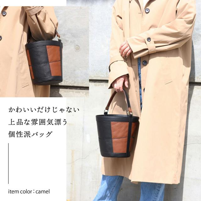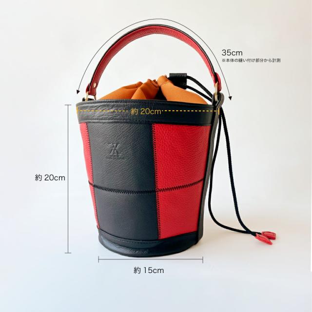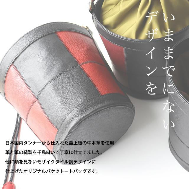 千鳥縫いの技術を使用した他に類を見ないバケツトートです。いままでにないデザイン性の高さ、で他の人とかぶらない貴方だけのコーディネートに。素材も、生産も、全てメイドインジャパン。自社工房製ならではのこだわりを細部にあしらっております。