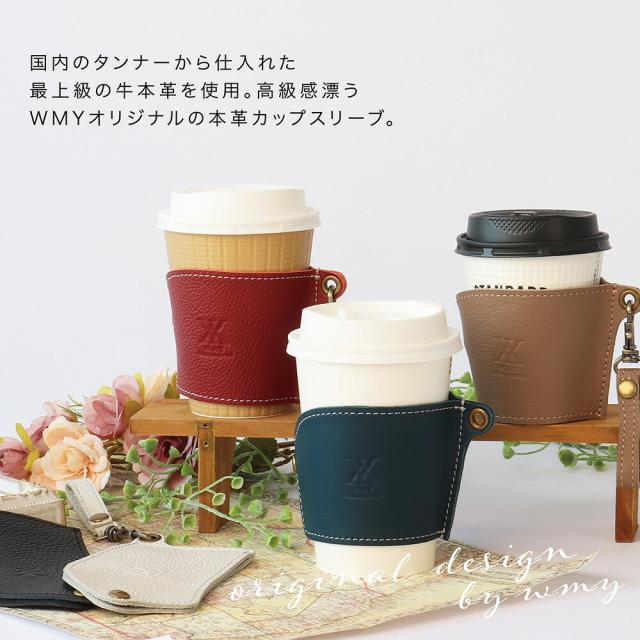 WMY 本革 カップ カバー 日本製 カップスリーブ ストラップ付属 カップホルダー コップ グラス マグ シンプル カジュアル お洒落 5色 ギフト プレゼント おそろい ペア 小物 雑貨 革 レザー メンズ レディース アウトドア 高級 ブランド made in Japan jpqn