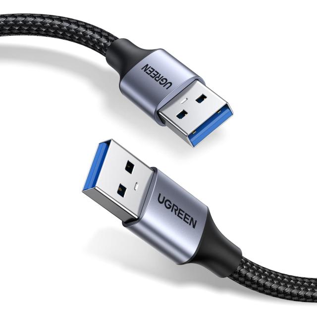 UGREEN USB ケーブル オスオス 3.0 a-aタイプ 5Gbps 高速転送 高耐久性 アルミシェルとナイロン編み ライト給電用 冷却ファン HDD TV Box カメラ DVDプレーヤー