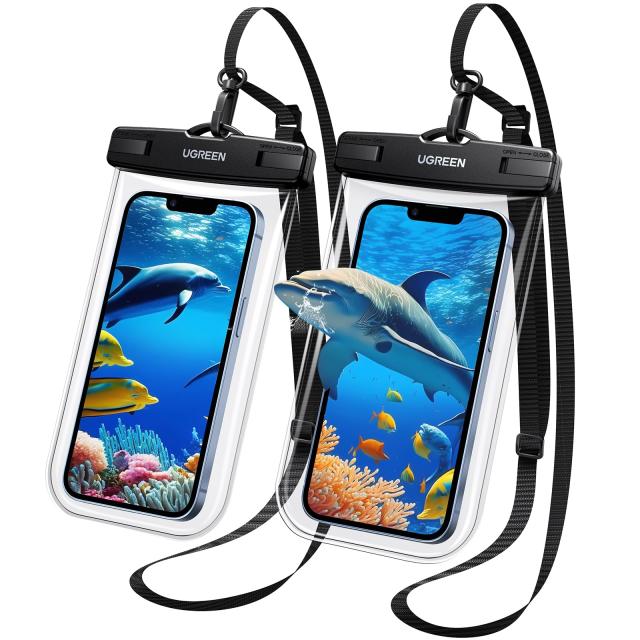 UGREEN スマホ 防水ケース 2枚セット 防水スマホケース 完全防水 顔認証 IPX8認証 水中撮影 高透過率 ストラップ付き 押しやすいボタン 通話 小物管理 お風呂 海 プール 水泳 温泉 iPhone14シリーズ/iPhone13シリーズ/iPhone 12シリーズ/Galaxy/Huawei P20/P30 lite、Xperiaな