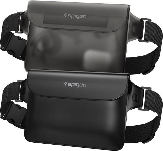 Spigen 完全防水 ポーチ ケース 小物 2個セット IPX8認証 海 プール アウトドア スマホ 三重チャック ベルクロ PVC 大容量 ウエストポーチ 防水バッグ A620 AMP04531 (ブラック)