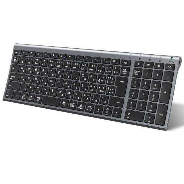 iClever キーボード Bluetooth ワイヤレス キーボード 無線 日本語JIS配列 3台同時接続可能 テンキー付き フルサイズ 超薄型 キーボード 静音設計 Type-C充電式 コンパクト パソコン用 ラップトップ PC iPad スマホ用 Windows Mac iOS Android対応 IC-BK22 グレーブラック