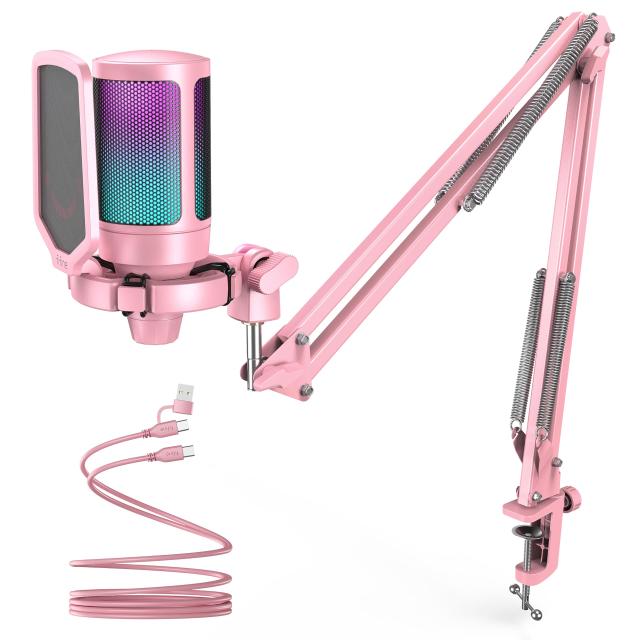 FIFINE USB コンデンサーマイク RGBライティング カーディオイド指向性 プラグ&プレイ パソコン プレステマイク USB-C→Aケーブル付き ワンタッチミュート YouTube Skype