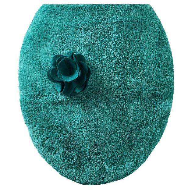 大きなバラのフェルトモチーフの付いた普通便座用トイレふたカバー。 トイレ空間をおしゃれに、個性的に飾っていただけます。 ナチュラルなグリーン色、クールなピーコックブルー、モダンでエレガントなパープル色、個性たっぷりのバイオレット色と、選ぶ色でトイレが違った見え方に。 4種類のサイズ・形状からマットを選んでいただけます。 また、コーディネート可能なマットやスリッパ、ペーパーホルダーも取りそろえて