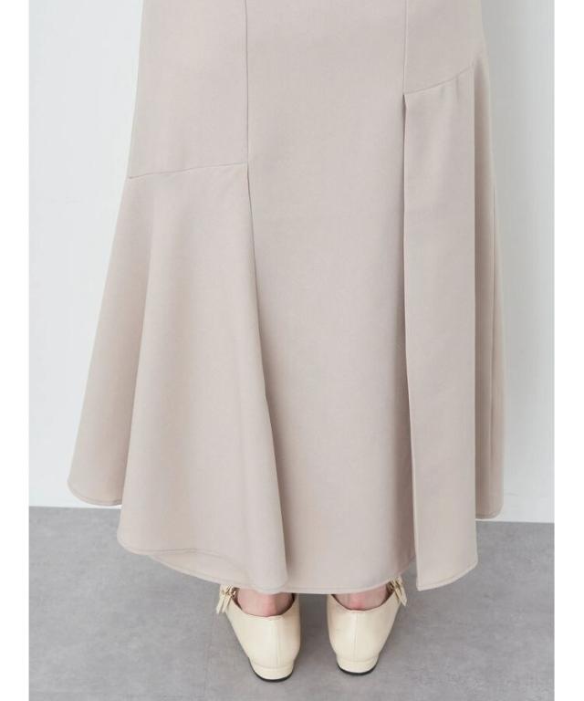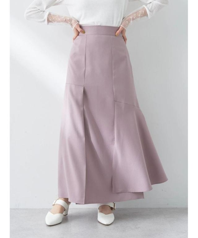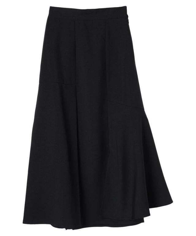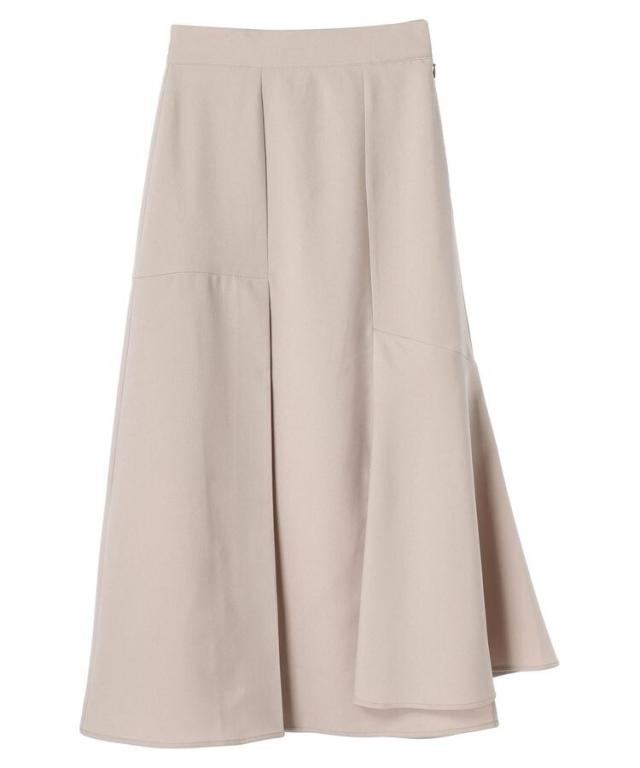 アシンメトリーなデザインがモードな雰囲気を漂わせるロングスカート。