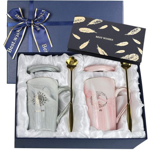 ZATAO 結婚祝い 父の日 母の日 ペアギフト 両親のプレゼント 誕生日プ 女性 人気 ペア夫婦 結婚記念日 新築祝い おしゃれ 可愛い 癒しグッズ 大理石 エスプレッソカップ セラミック カップル ギフトボックス入り 450ML (太陽と月)