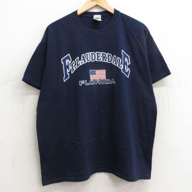 【商品名】 XL★古着 フルーツオブザルーム 半袖 ビンテージ Tシャツ メンズ 00年代 00s フォートローダデール フロリダ コットン クルーネック 紺