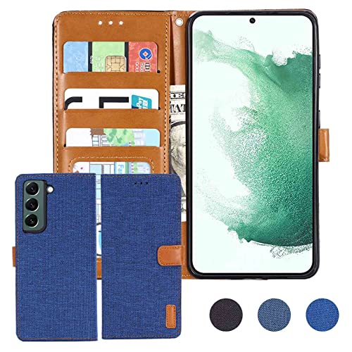 【 Anrek 】Galaxy S22 Plus 5G S22+ 対応 Samsung デニム材料 手帳ケース (ブルー) サムスンs22プラス ギャラクシーs22+ ケース カバー
