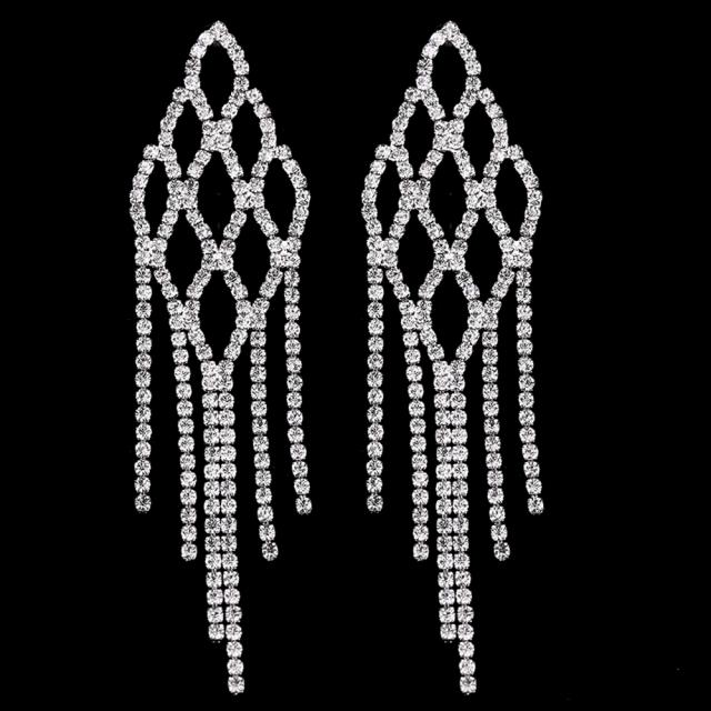 高級感のあるシルバーメッキとラインストーンがキラキラ輝く披露宴にもおすすめのピアス。発表会のドレスの衣装に合わせてもゴージャスなセレブピアス。