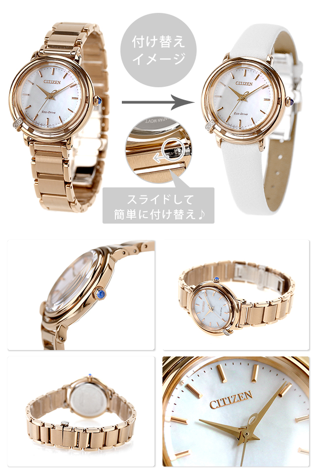 シチズン エル ARCLY Collection 光発電エコドライブ 腕時計 ブランド レディース ダイヤモンド 替えベルト ソーラー CITIZEN L EM1093-61D アナログ ホワイトシェル ピンクゴールド 白