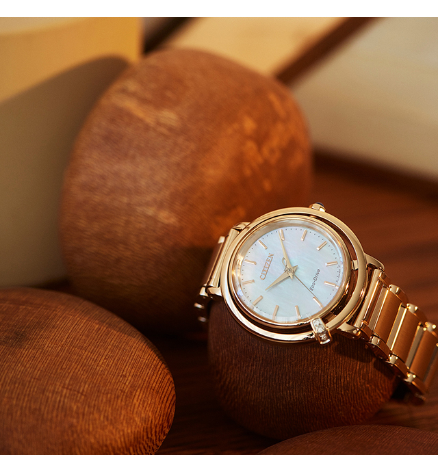 正規品 7年保証キャンペーン 送料無料 シチズン エル ダイヤモンド 替えベルト ソーラー 光発電エコドライブ 光発電エコ・ドライブ レディース 腕時計 EM1093-61D CITIZEN L ARCLY Collection アナログ ホワイトシェル ピンクゴールド 白 ◆地球のように美しいサステナブルウオッチ、 CITIZEN L(シチズン エル)。新たな始まりを告げる日の出をモチーフにした新モデルが登場。新たな始まりを告げる日の出をモチーフに、マニッシュな端正さの中にフェミニンな要素を取り入れ、あらゆるシーンやファッションにフィットするデザインです。7時半の位置では、ケースと周囲のリングをつなぐように3ポイントのダイヤモンドが連なるオーナメントを配し、日の出の最初の閃光が走る様子を表現。りゅうずには、アクセントとなる爽やかなブルーをあしらっています。光の放射を表現したインデックスと切分を配し、視認性を確保。メタルバンドと植物由来(リンゴ)のバンドは、スムーズに付け替えが可能なインターチェンジャブル構造を採用。その日の気分やシーンに合わせて2WAYスタイルが楽しめます。 発売日:2024年4月発売