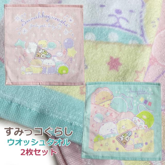 [2枚セット] すみっコぐらし ハンドタオル ウオッシュタオル 吸水 送料無料 かわいい お祝い 入学祝い 卒園祝い お子様 すみっこ san-x サンエックス ウォッシュタオル 木馬 すやすや 犬飼タオル プレゼント かわいい シャーリング