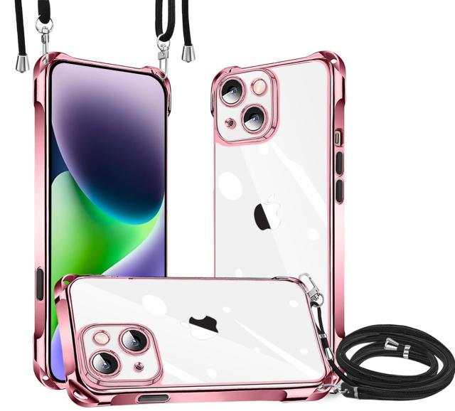 ◆商品名:i Phone 15 用 ケース クリア ショルダー TPU メッキ加工 カバー アイフォン 15 ストラップケース 新型韓国 チャーム シリーズ i Phone 15