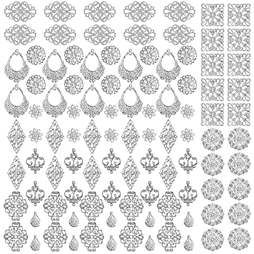 ◆商品名:サムコス 約100個セット 透かし パーツ シルバー 四角 三角 花 月 雫 DIY ハンドメイド アクセサリー 金具 素材 ピアス イヤリング かん
