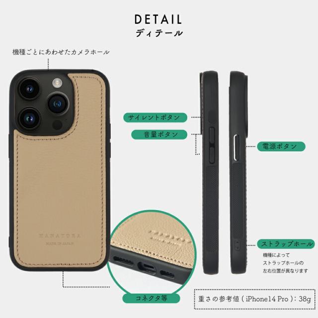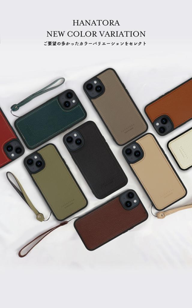 2023年HANATORA新モデル。楽天ランキング常連のiPhone レザーケースの細部をモデルチェンジした、シンプルスタイルのケースが登場。使用しているレザーを欧州製から日本製に変更して、グリップ力をアップしたケースにはストラップホールを装備。さらに同一のレザー素材で仕立てたハンドストラップを付属いたしました。全ての工程を日本で仕立てている、純日本製のアイテムです。