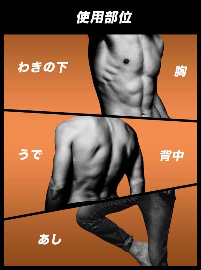 ・足、うで、わきの下、背中、胸のみにご使用できます。それ以外には使用しないでください。