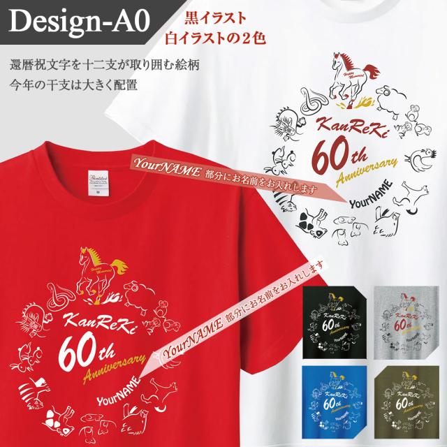 還暦祝い 名入れ Tシャツ 干支 ラッピング 還暦 tシャツ お祝い プレゼント 名入れ 名前入り 赤 レッド ブラック ホワイト ブルー グレー オリーブ 60歳 誕生日 おしゃれ サプライズ メンズ レディース 男性 女性 父 母 上司 メール便 送料無料
