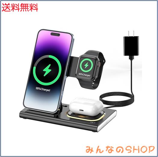 ◆商品名:【最新型】HATALKIN 3in1ワイヤレス充電器 アップルウォッチ 充電 Compatible with iPhone15/14/13/AirPods Pro2/Apple watch ultra 2/9/