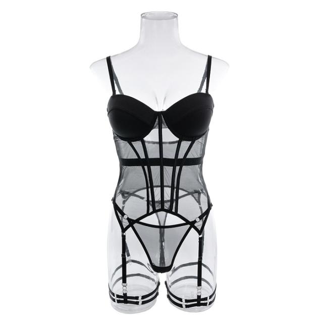 LG188 メッシュ 透け ランジェリー セット コルセット ベビードール ネグリジェ セクシー コスプレ セクシーランジェリー セクシー下着 ブラック