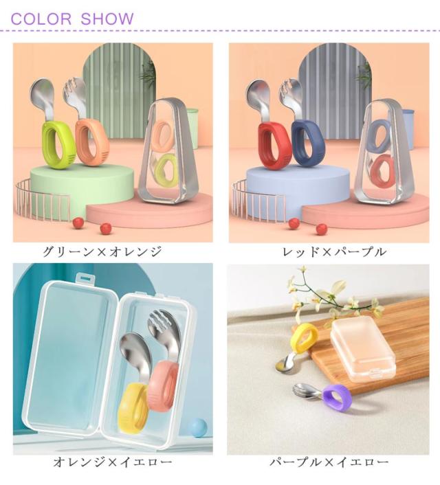 曲げスプーン 3点セット 食事補助 ベビー食器 ケース付き 握りやすい スプーン ベビースプーン 子供用スプーン キッズ 1歳 幼児用 フォーク 離乳食器 食器 スプーン 自分 左手 右手 知育カトラリー 赤ちゃん ベビー ベビー食器 子供 女の子 男の子 出産祝い 可愛い